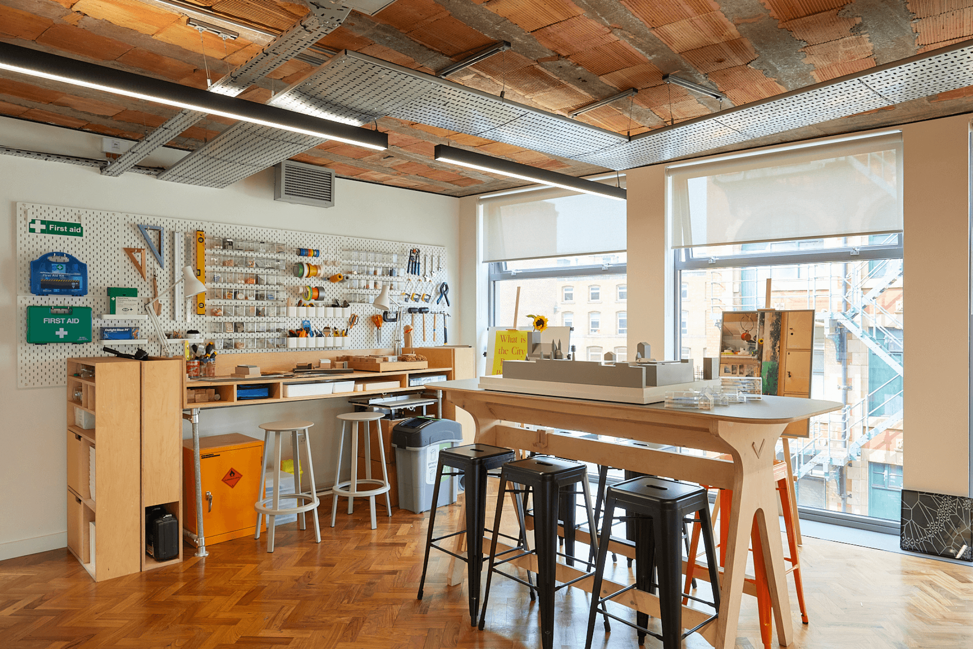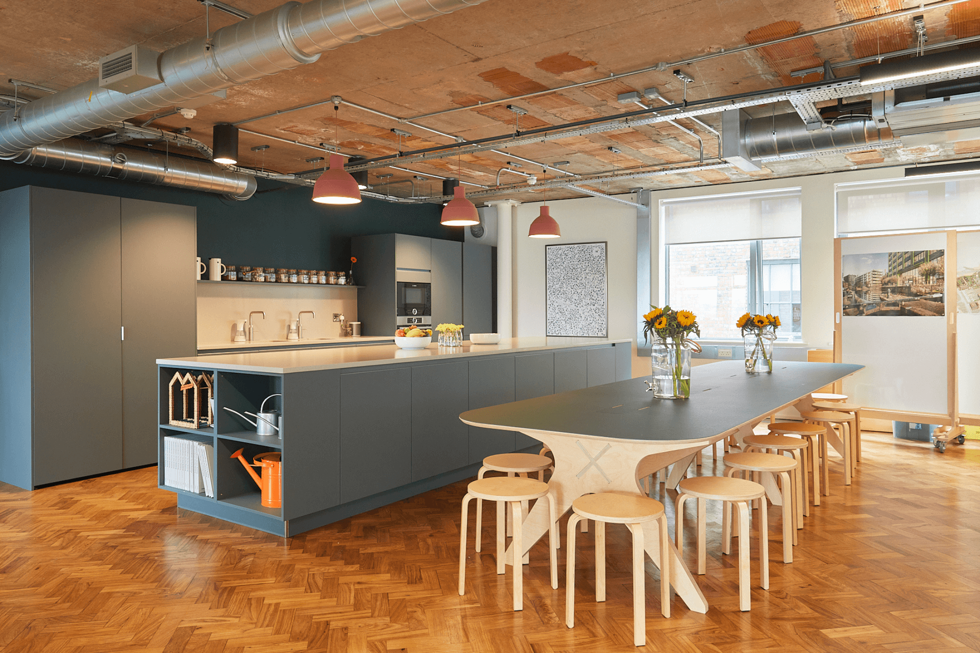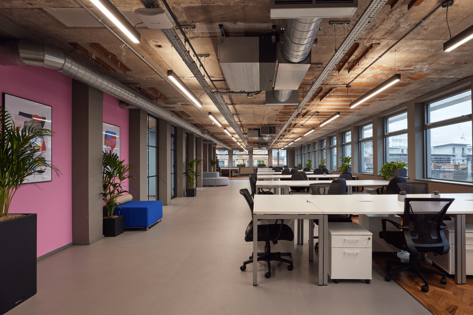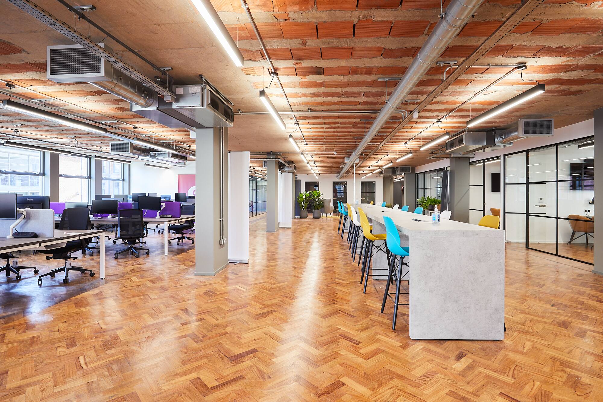 Air conditioning, floor to ceiling windows and bike storage facilities have upgraded the space whilst ceilings have been stripped back to exposed brickwork and terracotta tiles. We retained the artworks at either side of the building, created as part of the Cities of Hope project in 2016 and furthermore celebrates these striking pieces by telling the story around their creation and concept.